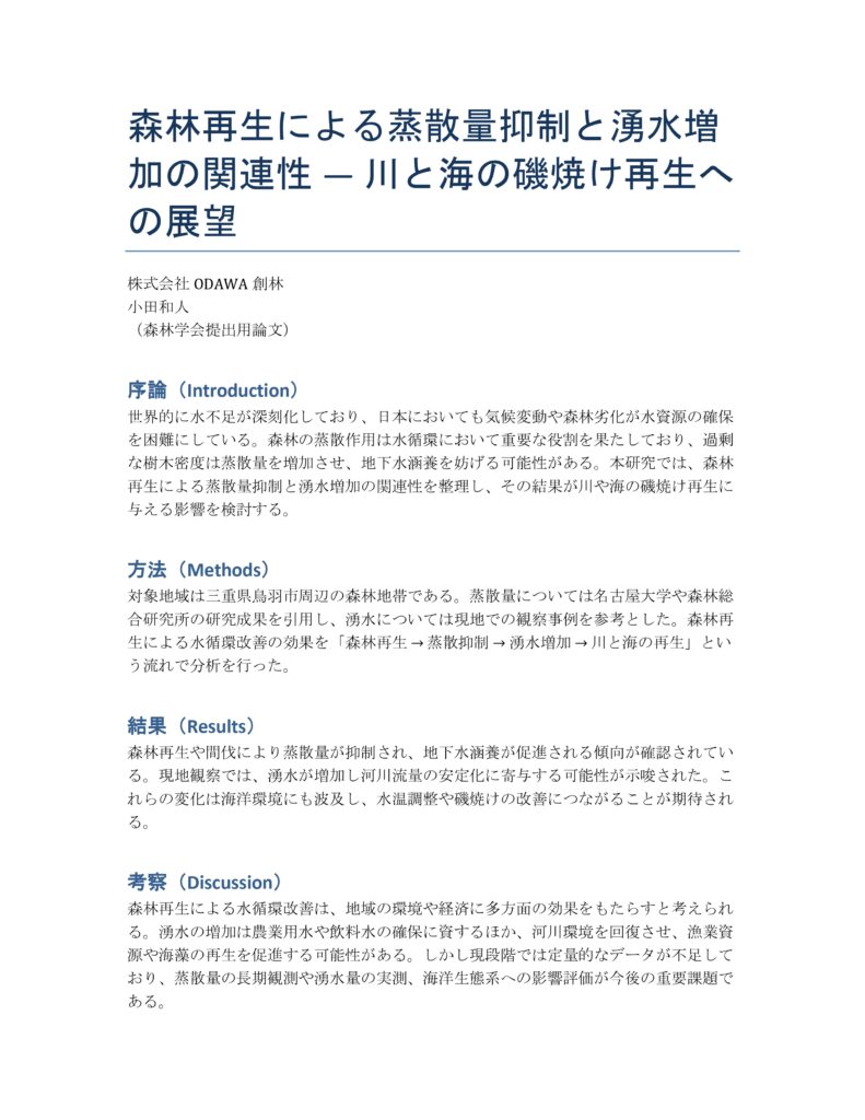 先⼈たちが⾃然に⾏ってきた伐採こそ森の蒸散を抑え、海に還る栄養分たっぷりの⽔作りを⽀えていたのでした。